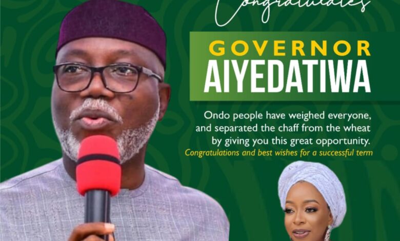“Your re-election is a clear indication of the confidence and support you have earned through your dedication to the development and progress of Ondo State.