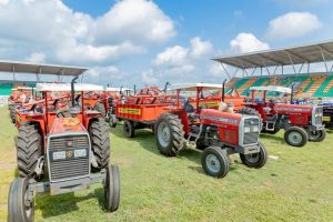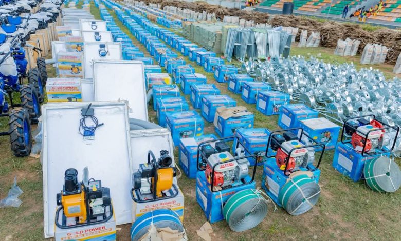 Items distributed included tractors, fertilizers, water pump, insecticides, sprayers, cassava stems, among others.