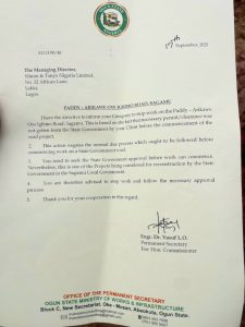 The letter further argued that the Presidency’s action “negates the normal due process which ought to be followed before commencing work on a State Government road.”