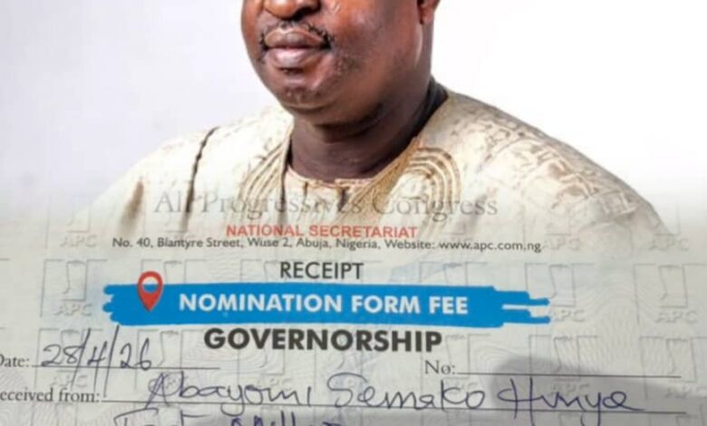 ABEOKUTA – A controversial chieftain of the All Progressives Congress (APC) in Ogun State, Abayomi Semako Hunye, has joined the race for the party’s governorship ticket ahead of the 2027 elections, despite lingering controversies surrounding his recent removal from office.